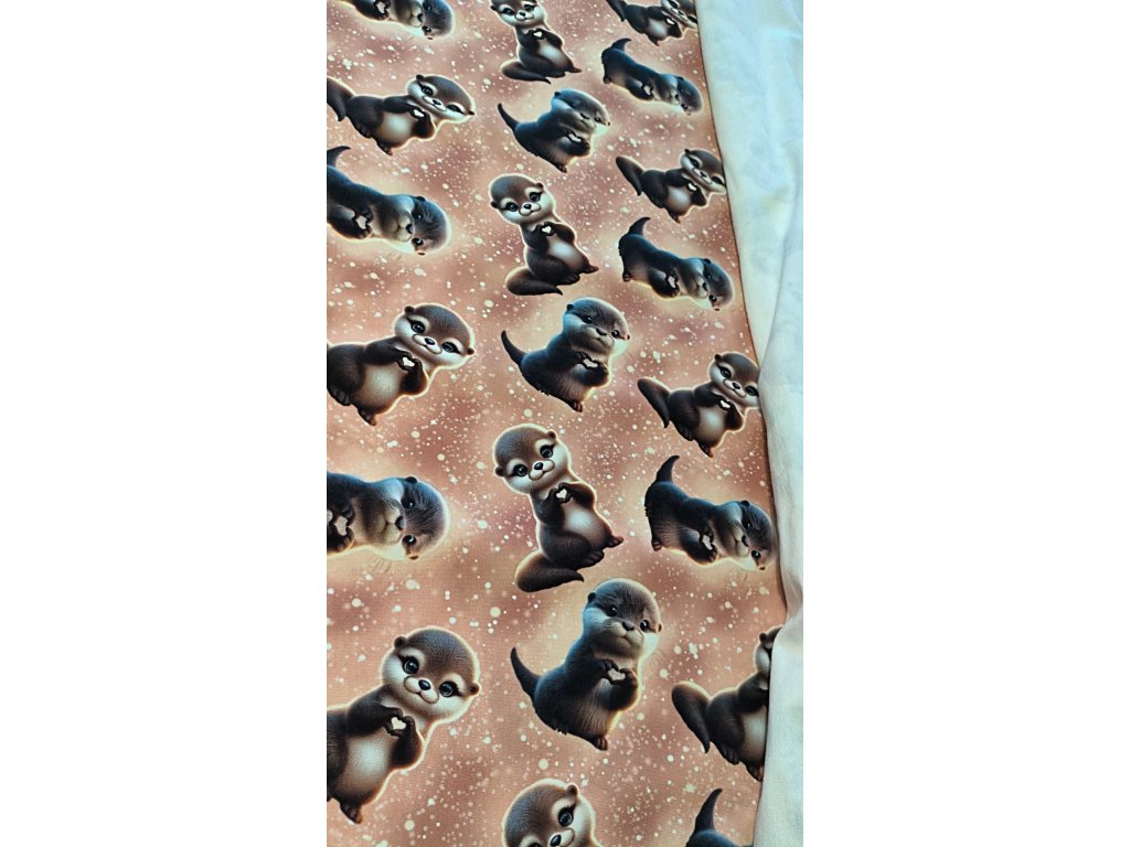 Hladká pružná nepočesaná teplákovina, digitální tisk.
